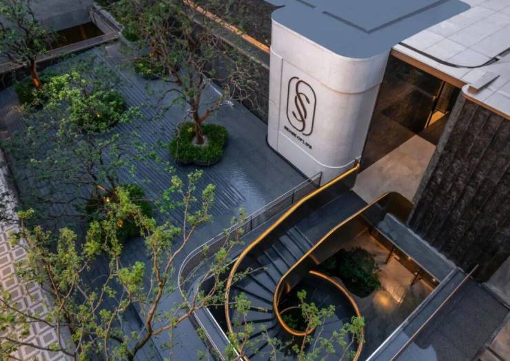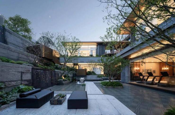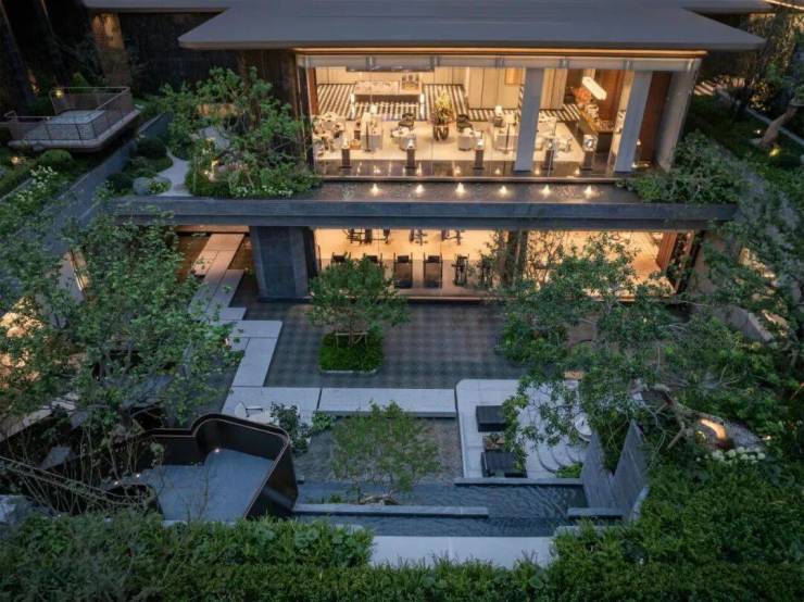 丽香庭整体抬升约3.7米,结合最大高差超7.5米的下沉庭院,解构赖特的「流水别墅」精髓,巧妙做出视觉层次多元的“立体庭院”。
