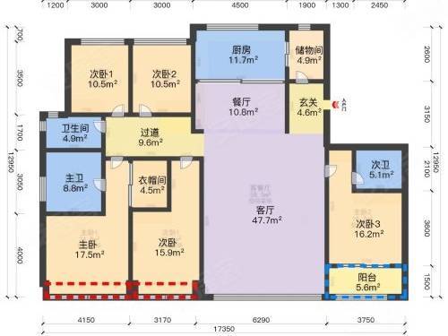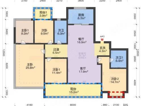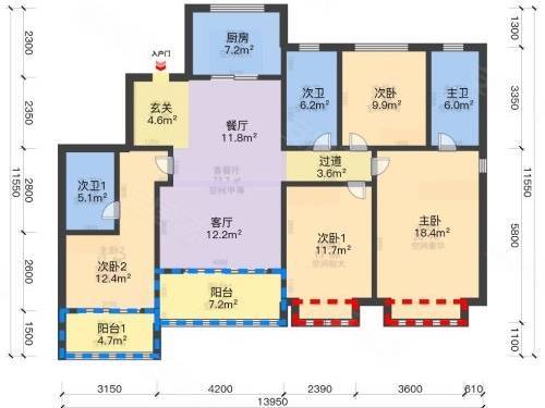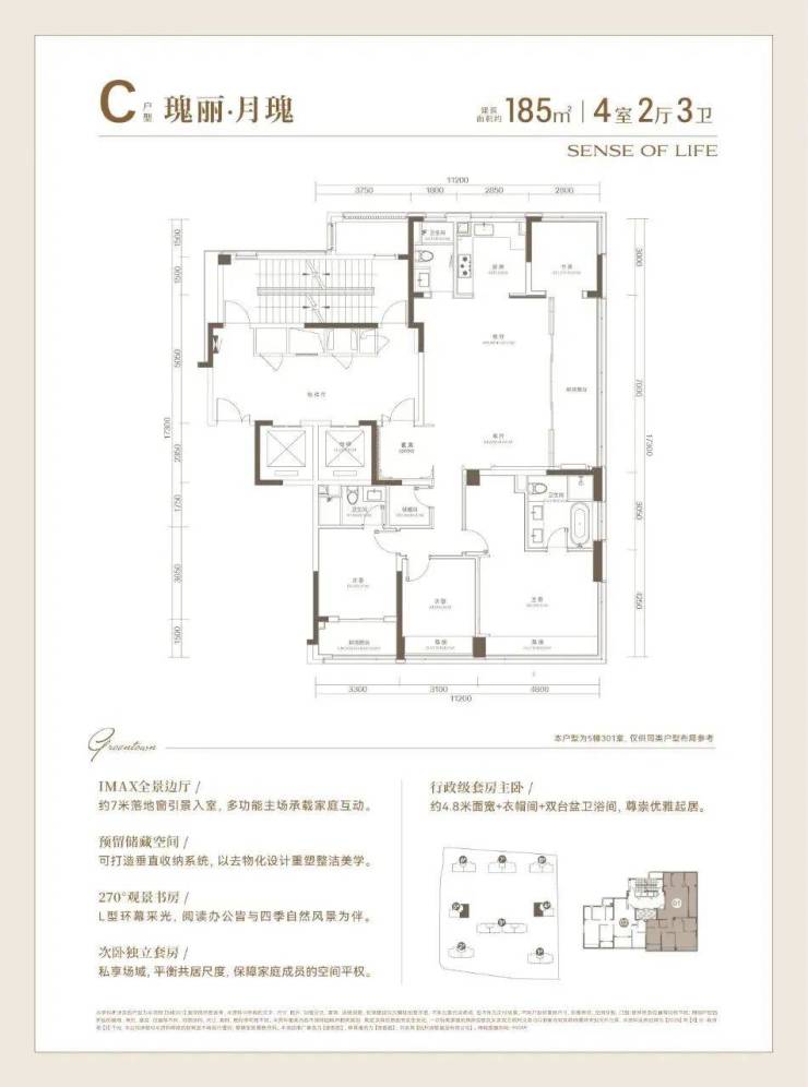 185㎡ 四房三卫:7.8 米横厅,879-1022 万