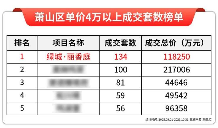 从9月1日至10月31日,丽香庭火爆劲销成功网签134套,揽金约11.82亿,登顶萧山区单价4万以上成交套数TOP1!