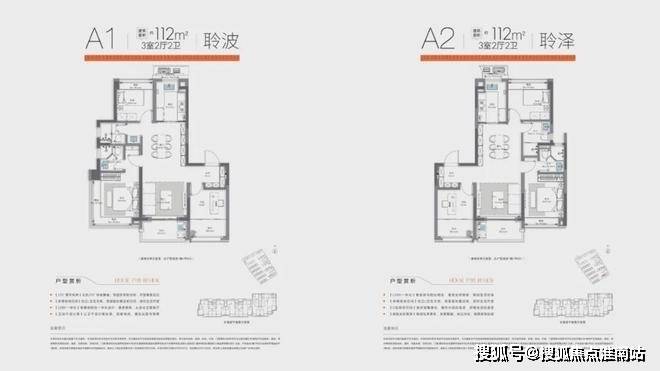 建面约112㎡3房,独立玄关入户,南向双阳台,如果南次卧打通阳台,那么就可以得到一个媲美主卧尺度的南次卧;边套主卧带L型转角飘窗.