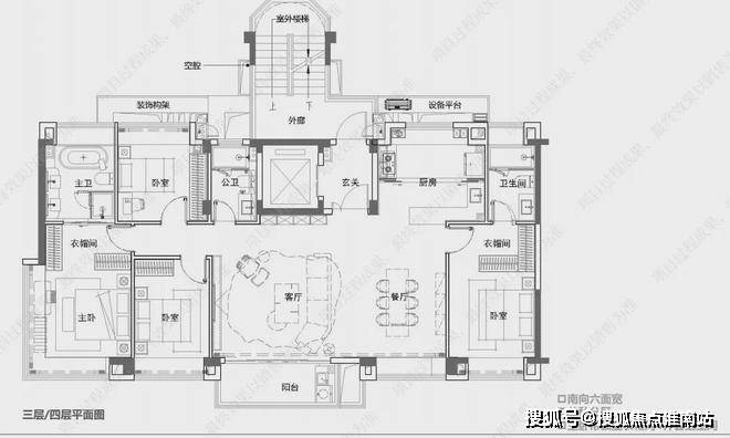 这个户型亮点在于LDBK一体化,做了一个大横厅,一方面尺度感更强,另一方面,可以根据需要设计成茶室、工作台、游戏间等等.