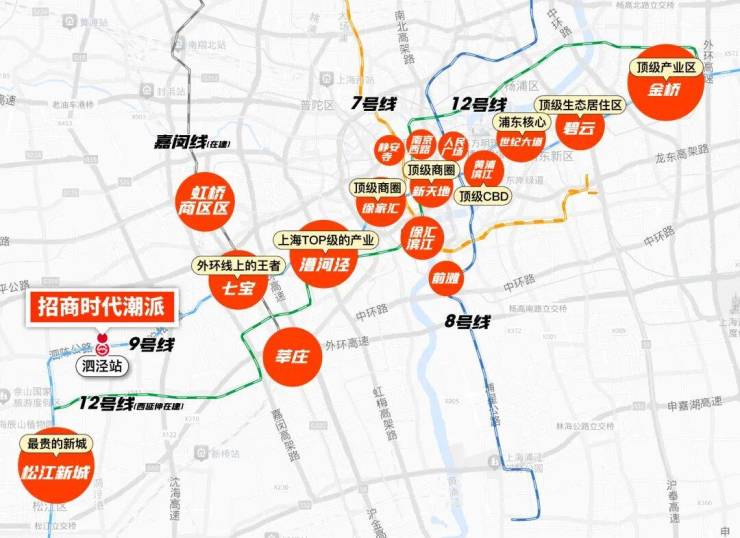 首先,这条轨交汇聚了上海东西最重要的两大产业:漕河泾&金桥。沿线还有徐家汇、世纪大道等顶级CBD。