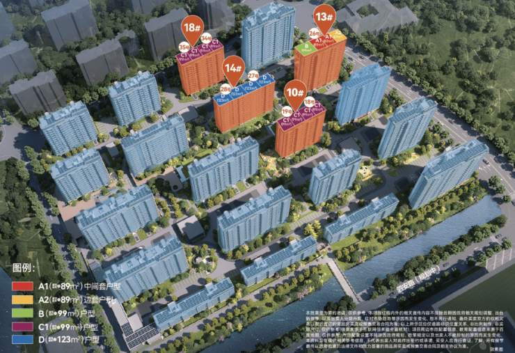 小结:从社区整体规划来看,本批次10#、13#、14#和18#四栋住宅都是坐北朝南的布局,位于社区主轴线一侧,单元户型采用了户户均好的模式。这四栋楼从社区规划角度来看都是很优秀的。