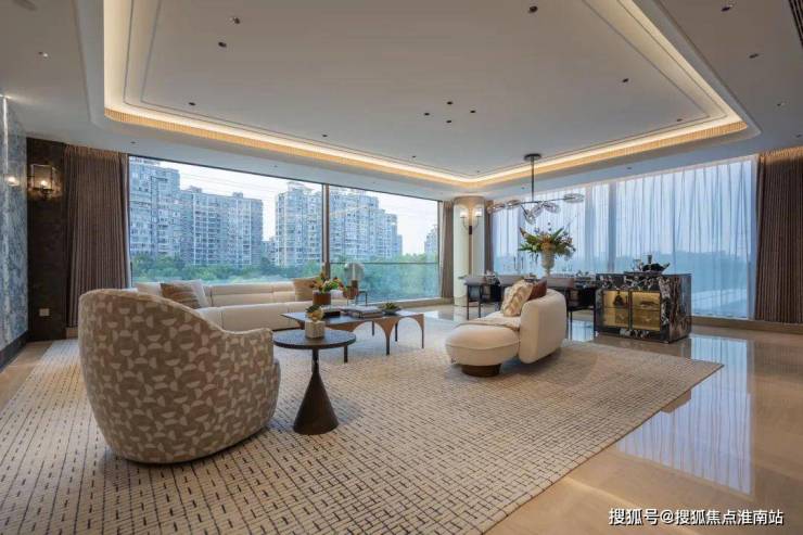 目前,项目准备即将开放的是平层户型的样板间。其中205方户型层高3.15米,245方户型层高3.3米,跃层则达到了约3.6米,整个空间更是气场十足。