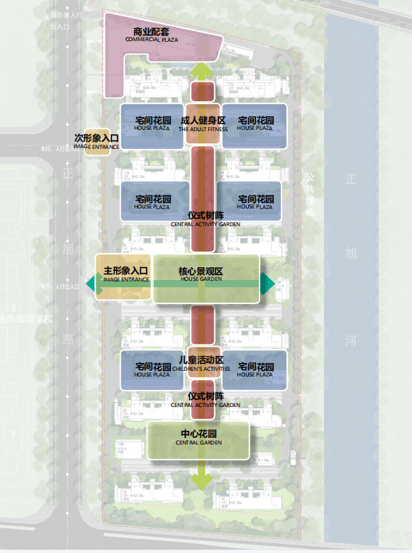 而南北走向的景观轴线,则以视觉对称的绿轴为主线,辅以三大超千平米的核心景观花园和不同主题功能的景观组团,兼顾四季四景的优美环境与全龄段健身休闲需求,构筑功能性与观赏性俱佳的绿色社区!