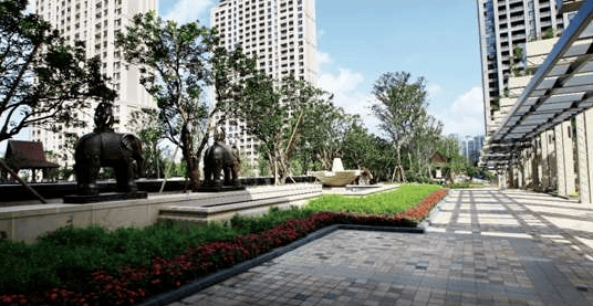 这也一直是项目对外主要输出的要点,根据显示内部园林景观是由加拿大B+H集团操刀,内部约4万平米巴厘岛空中花园、约800㎡的露天泳池,都成为品尊国际这个这个豪宅不可缺少的标签。