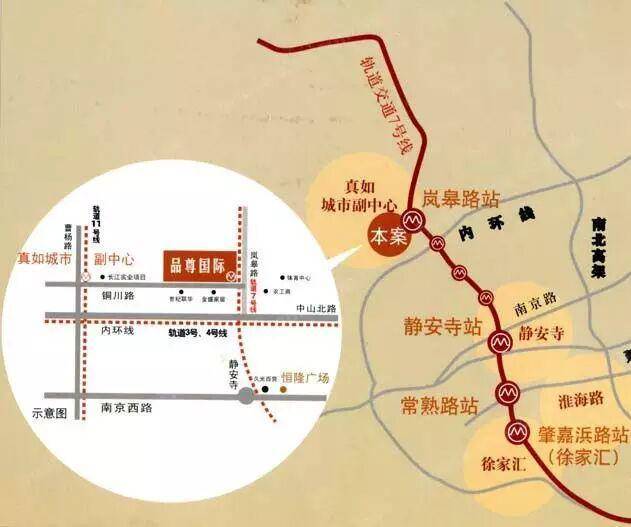 交通方面:项目距离7号线岚皋站300米,1站换乘3/4号线,2站换乘13号线,4站换乘2号线,不论地铁还是自驾出行都非常方便。