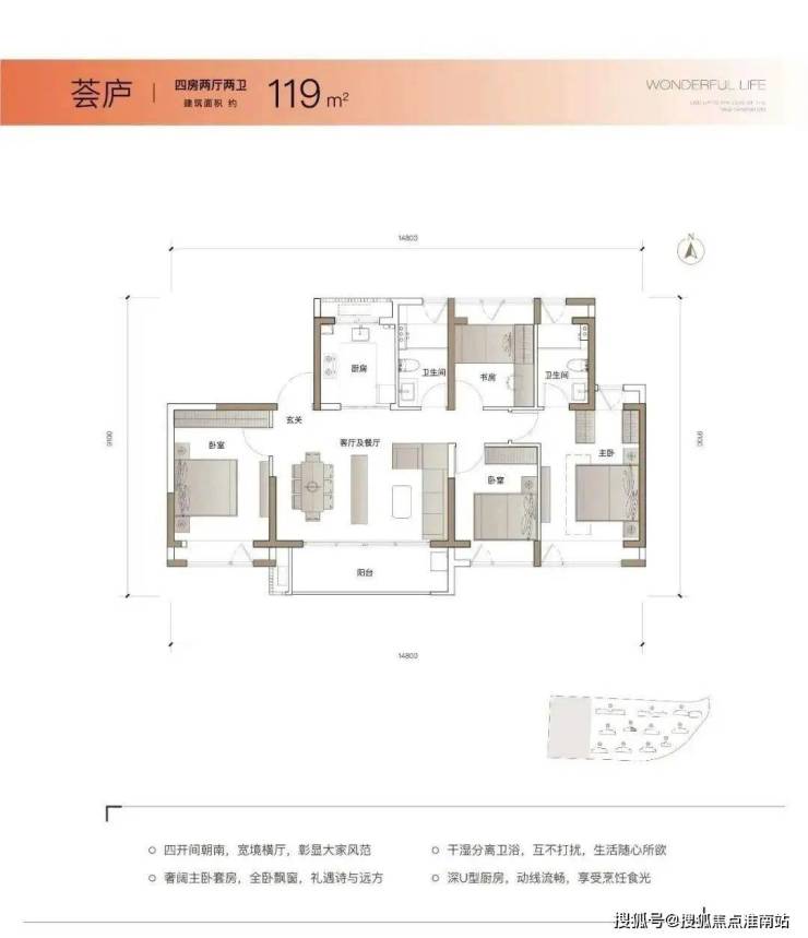 户型包括 约88-119平高层(含毛坯/精装),房地联动价 3.65万元/平方米,户型图如下: