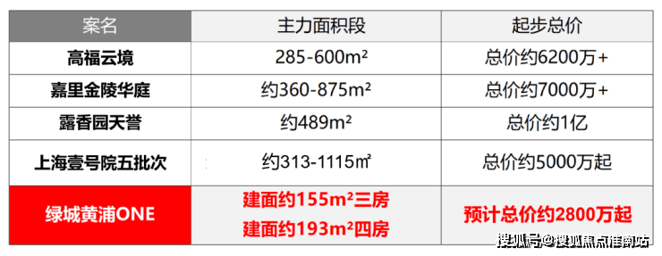 绿城黄浦ONE,将推建面约155-193m²产品,预计总价约2300万起,项目仅有112套,二批次房源56套!均价17万!即将入市!户型也是非常的不错!全部飞机户型,南北通透!