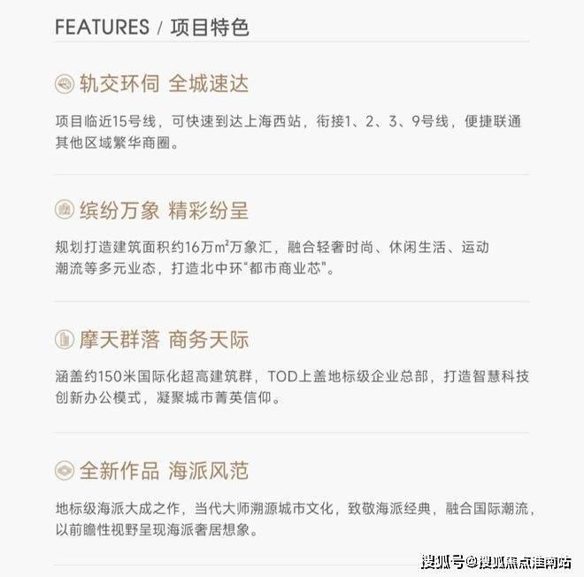 以一座复合型综合体大城,万象系商业、海派精奢住区、超高层办公塔楼无界汇集,实现“生产+生活+生态”的“三生”融合,将未来公园城市植入其中,建设站城人一体的TOD复合生活场,指向未来的造城实践。将“交通、商业、公园、办公、居住”五大业态一体化集成,引领北中环复合综合体生活方式。
