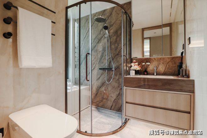 同时卫生间配有杜拉维特的面盆、汉斯格雅的龙头+五金、AO史密斯燃气热水器、杜拉维特智能马桶(建面约139㎡户型)、恩仕智能马桶(建面约110㎡户型)等国际一线大牌,这个标准放到南大甚至是整个中环沿线,都是顶配级别。