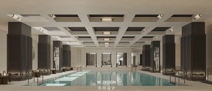 还打造了一个具有会客区、恒温泳池、瑜伽健身的会所。