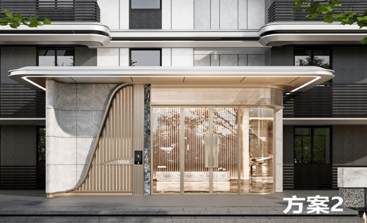 墙面奢华石材:大面积玻璃幕墙结合铜质镶边工艺