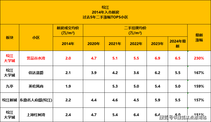 2014年入市新房中,松江新城涨幅靠前的是誉品谷水湾,当年该项目新房成交价在2万左右,现在挂牌均价高达约6.6万/㎡,约237%。中企誉品银湖湾售楼处电话:400-891-9910✔✔✔
