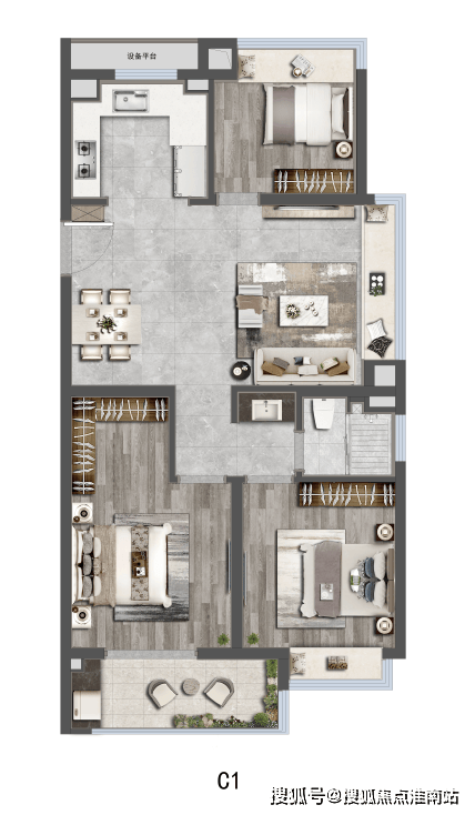 社区方面,项目打造全龄段,全维度活力健康住区,以“两轴一心、一环五区”园林景观规制约7500㎡中央景观,高配约600米环形健身步道。