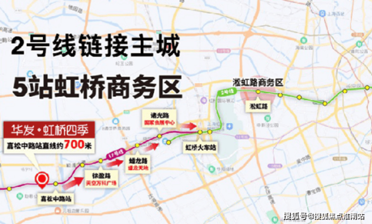 近地铁,通勤无忧:项目距17号线嘉松中路站直线距离仅约700米,2站直达万科天空之城,5站即达虹桥火车站,出行高效便捷。(数据来源:百度地图)