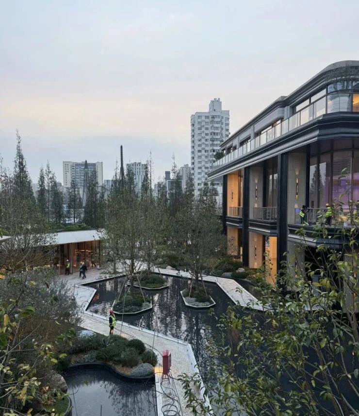 三层归家动线:从地面景观层到架空层,再到入户层,穿越绿植、光影与水景,步步进入私域。