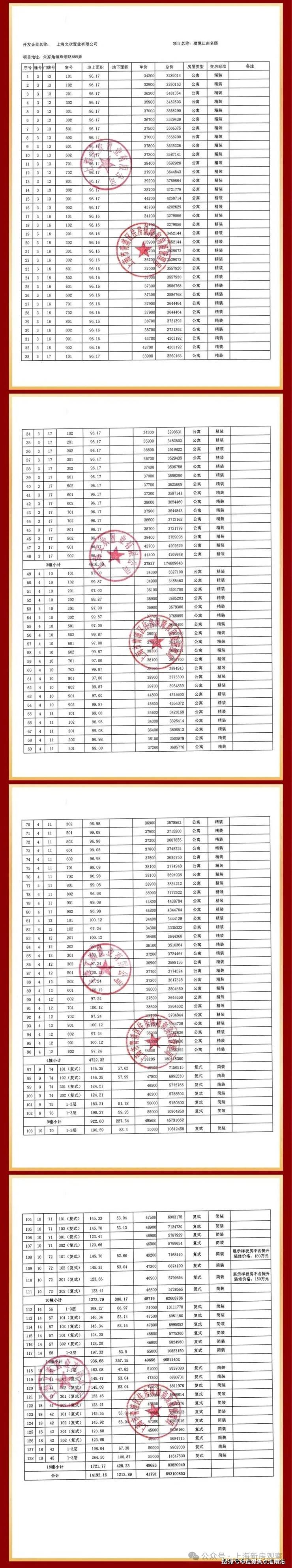 一房一价表如下: