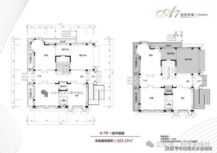 布局:地上三层(4.5米层高)+地下一层(6.2米层高)+900㎡花园