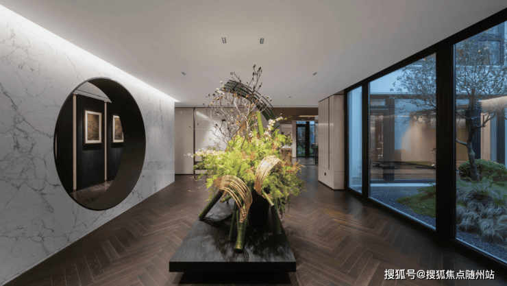景观融合:270°全景落地窗,将湖山景观引入室内,实现“离尘不离城”