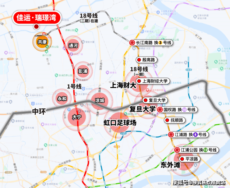地铁也是如此,纵观上海北区,几乎清一色纵向地铁,而18号线二期可以说是北区(中环外)首条东西线轨交,这就带来了发展契机。