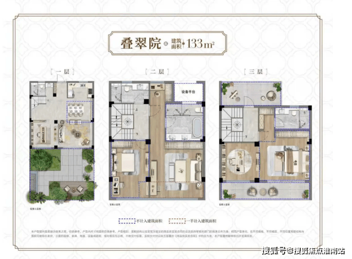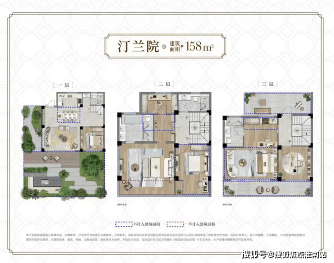 项目目前已经公布了三种院墅户型,户型面积在133-158平!