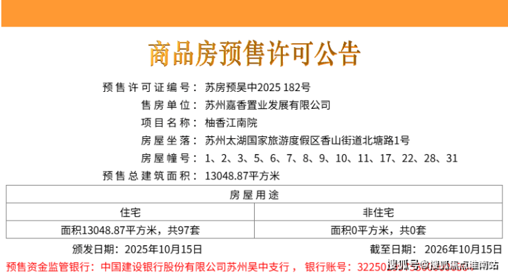 在拿地近1年的时候,吴中区环太湖板块的纯新盘又见江南(备案名:柚香江南院)首批房源正式取证了。