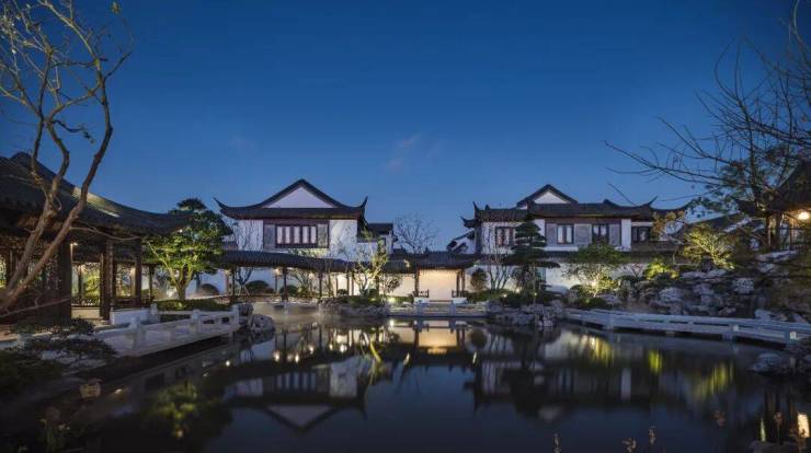 上海桃花源师承苏州园林五进制序列,打造出“迎宾院-主峰院-水溪巷-湖山院-中轴央景”的游园路线。目前,这是中式园林中最富层次的江南园林主轴线,彰显上海桃花源的世家之仪。