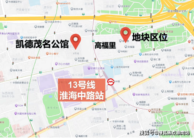 从地图上看,高福里-距离13号线淮海中路站非常近! 与凯德茂名公馆一路之隔! 属于“巨富长”范围内!