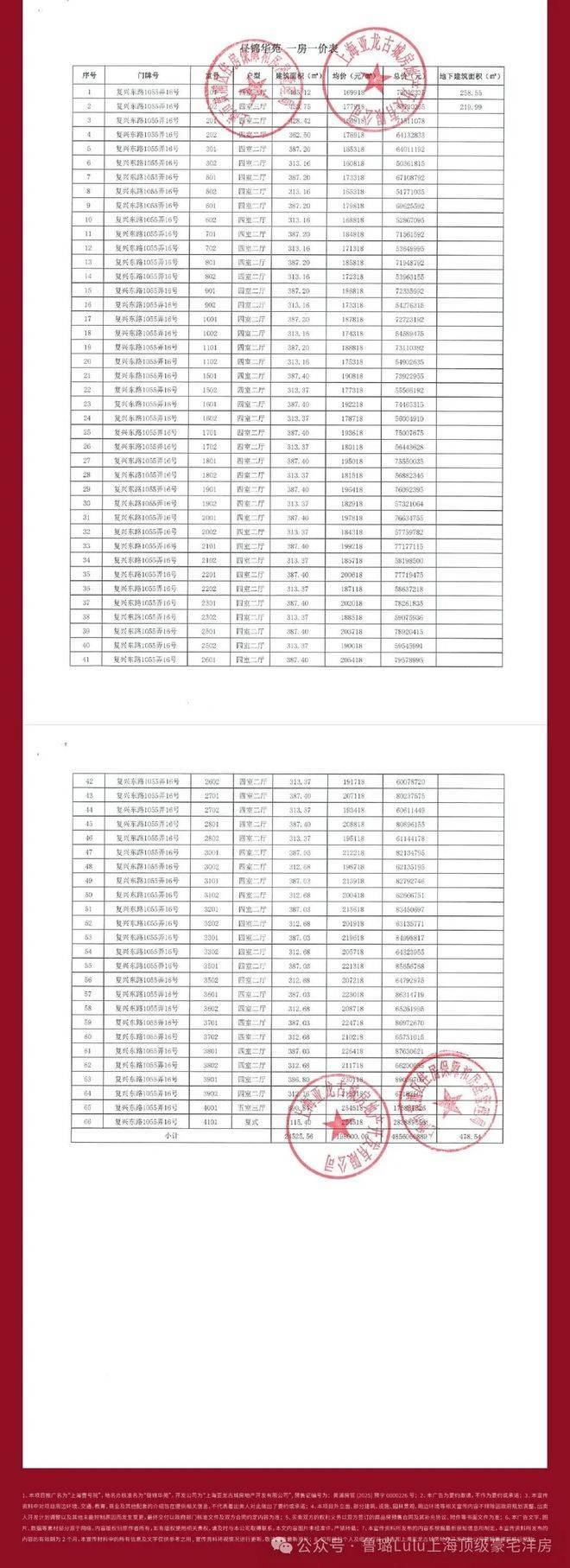 上期一房一价表: