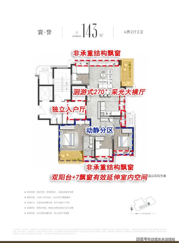 由此我们便得到了超大比例的双阳台+非承重飘窗结构的爆款神户型!并且拥有豪宅标配准一梯一户!独立电梯厅的使用空间接近8㎡,可以做充足门外收纳空间!约143m²的户型打造出堪比约160m²+的空间尺度感,堪称当下内环超级性价比王者产品!