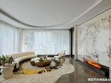 「无界空间」:客厅270度转角无柱设计,搭配落地玻璃,开阔视野将院中风景迎入日常。