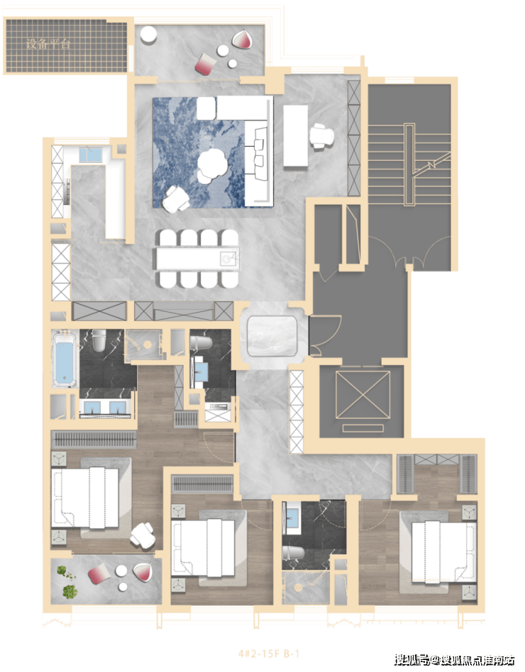 尤其主卧星级套房,配置独立衣帽间、书房,奢华主卫四分离,双台盆+淋浴区+大浴缸+智能马桶,私密性&奢适度无敌;