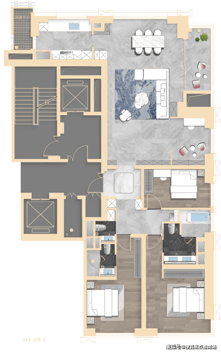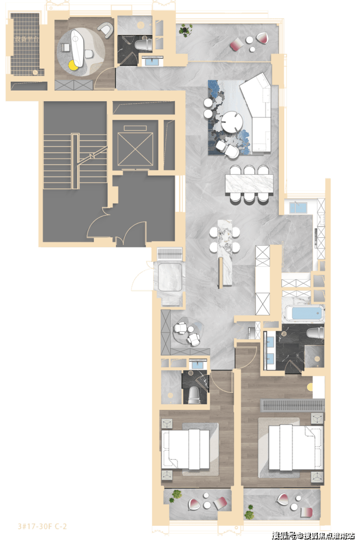 建面约193、237㎡为类一梯一户设计,拥独立门厅;建面约303㎡标配2梯1户、私享梯厅,纯粹的大平层圈层!