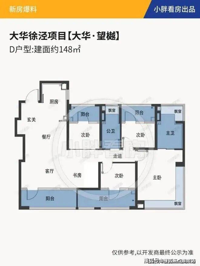 建面约148㎡户型更是做到了惊人的四阳台配置,远远超过新规标准.