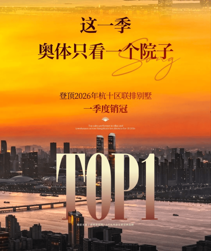 奥体院子,2026开年即热,一季度斩获杭十区联排别墅销冠,交出了一份亮眼的成绩单,稳居低密产品成交榜首(数据来源于透明售房网1-3月杭州排屋新房网签榜),市场的真金白银,永远流向最稀缺的资产,这一季,奥体只看一个院子——奥体院子。