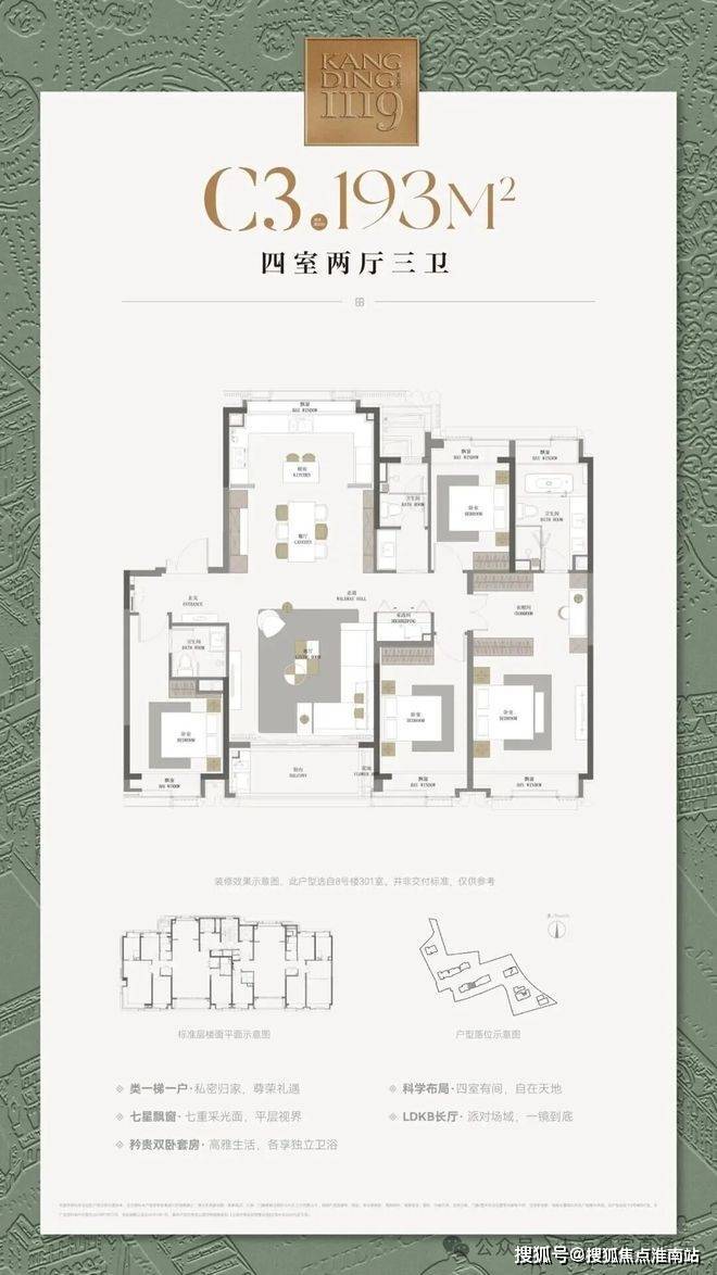建面约120㎡三房户型,✅✅康定壹拾玖售楼处电话:400-891-9910✅✅适配南北动静分区结构,是臻藏老静安资产的性价比之王;