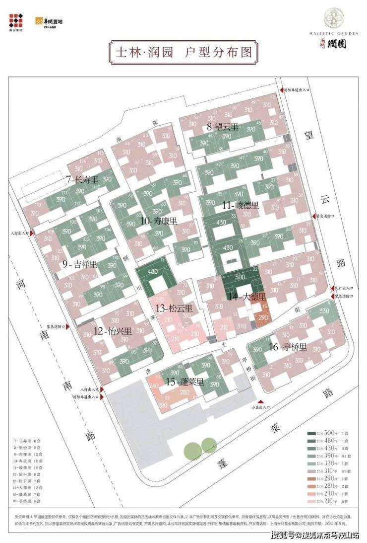 项目为纯粹低密合院社区,主力户型建面约210–500㎡,涵盖多种面积段,每栋“一户一定制”,无重复设计: