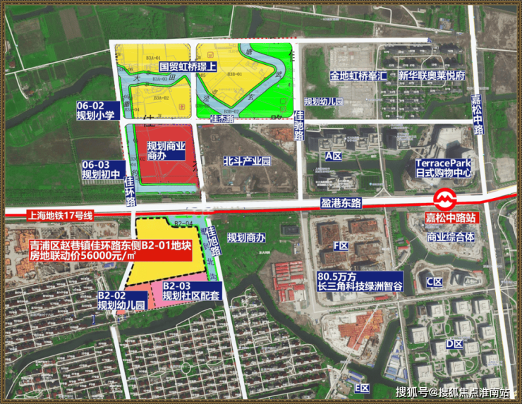 地块直线距约500米,就是17号线嘉松中路站,它是一个纯正的虹桥地铁房!