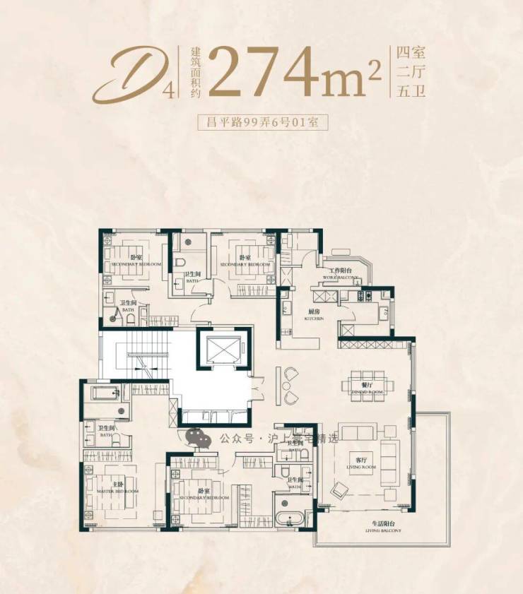 纯四房大平层设计:主力户型176–274㎡,填补老静安改善市场空白,圈层纯粹
