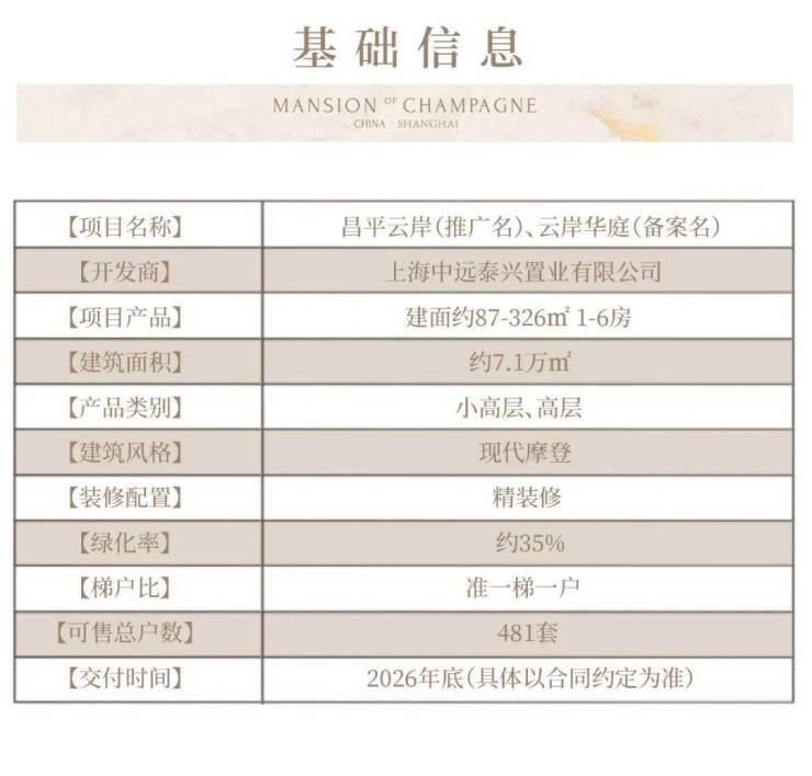 昌平云岸(推广名:昌平云岸,备案名/别名:静安73街坊、云岸华庭)是位于上海市静安内环核心、苏州河畔的高端改善型住宅项目,由上海新静安(集团)有限公司(国企)开发,主打“老静安苏河一线滨水大宅”,定位为内环稀缺地段的高标改善盘。项目于2024年6月24日首开,目前仍有少量大户型在售,预计2026年底交付。以下是全面详情: