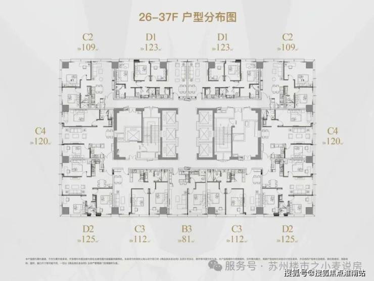 中区是26-37层,户型分别是 80㎡,107㎡,120㎡,125㎡;