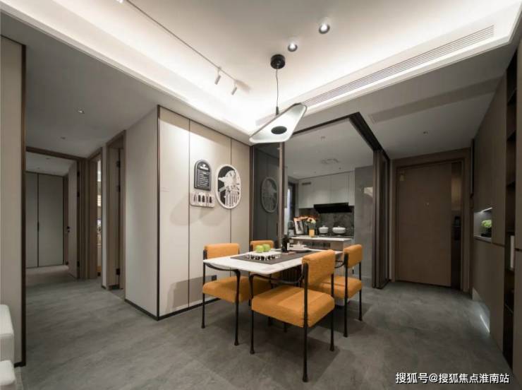 2、尺度感:一方面,两梯两户造就了“类独立电梯厅”,梯门一开,家的温暖迎面而来,家的玄关尺度,延伸至电梯厅。
