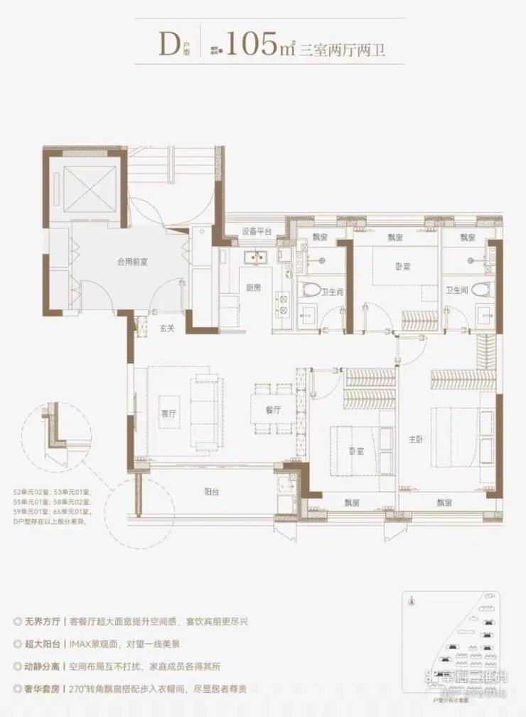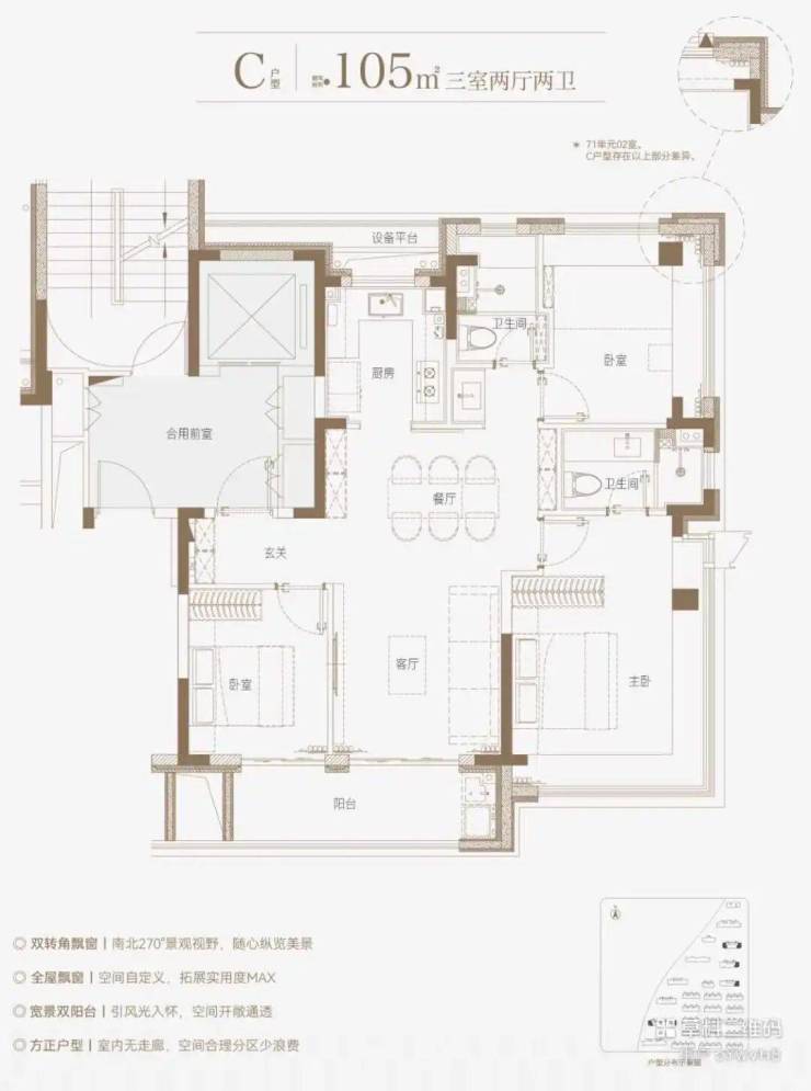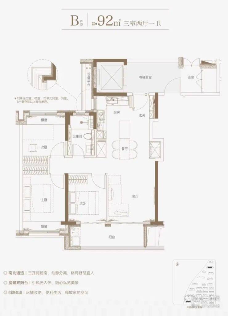 本次主推主力户型,涵盖三房 / 四房改善产品,亮点突出:高得房率 + 多赠送空间,零过道浪费类一梯一户 / 独立电梯厅,私密性与尊崇感兼备LDKB 一体化横厅设计,尺度感超越同级全系品牌精装,配置高端,居住体验一步到位