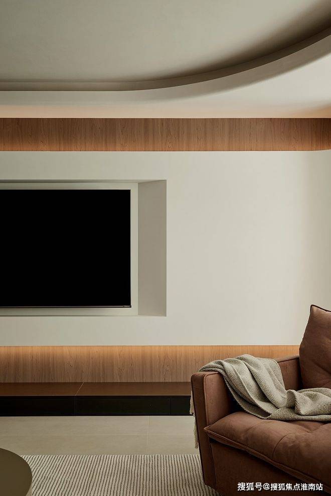 无主灯设计巧妙勾勒出空间层次,光线柔和又高级。白+原木的电视背景墙,高级质感扑面而来。