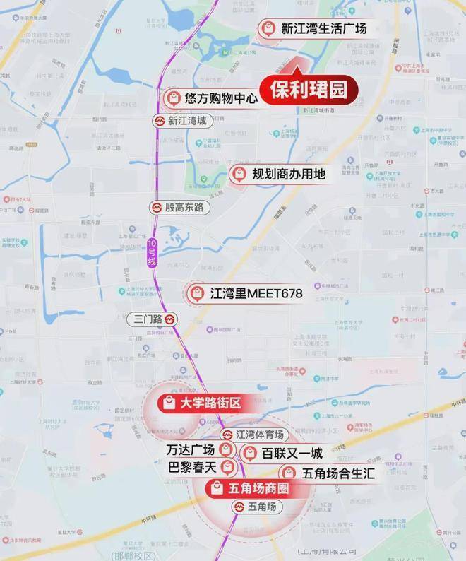 交通配套:占位上海北部中外环交通黄金节点,构建「三轨交+双高架+公交」四维立体交通网络,出行便捷高效,通达全城。1. 轨交:直线1.1公里可达地铁10号线新江湾城站,步行15分钟可达,10号线3站直达五角场,10站抵达南京东路,可无缝换乘上海全城绝大多数地铁线路;直线700米可达在建地铁20号线/18号线换乘站(预计2027年通车),未来可快速通达静安寺、陆家嘴、北外滩等核心商圈。2. 自驾:直线1公里可达中环路、逸仙高架入口,5分钟驶入军工路隧道、北横通道,15分钟直达五角场、北外滩,25分钟抵达陆家嘴、人民广场,上海核心城市路网全覆盖。3. 公共交通:项目周边密布10余条公交线路,可快速接驳杨浦、虹口、浦东各大核心板块,补充日常短途出行需求。
