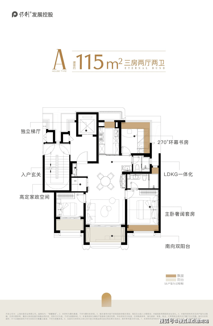 同样凭借“全赠飘窗+南向双阳台+独立全明电梯厅”的组合,实现了约93%的超高得房率,0过道浪费,空间利用率拉满。