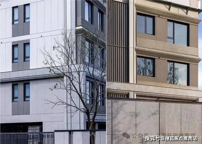 叠墅立面设计上,使用270°的幕墙与铝板呈现时代公建化高颜气质,超高成本的中式铝板披檐及基座与横向石材干挂传递东方审美。