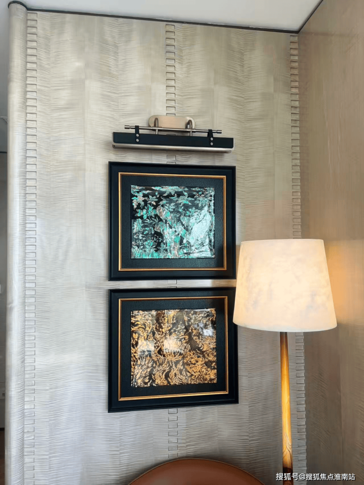 主卧系统:床头背景墙为皮革硬包+不锈钢,营造温馨与质感兼具的休憩氛围。