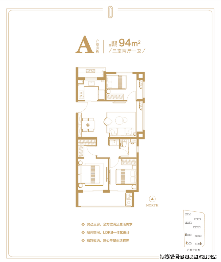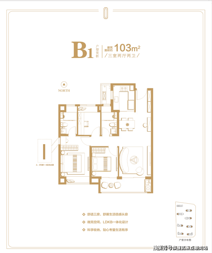 项目少量建面约94-103-122㎡3房